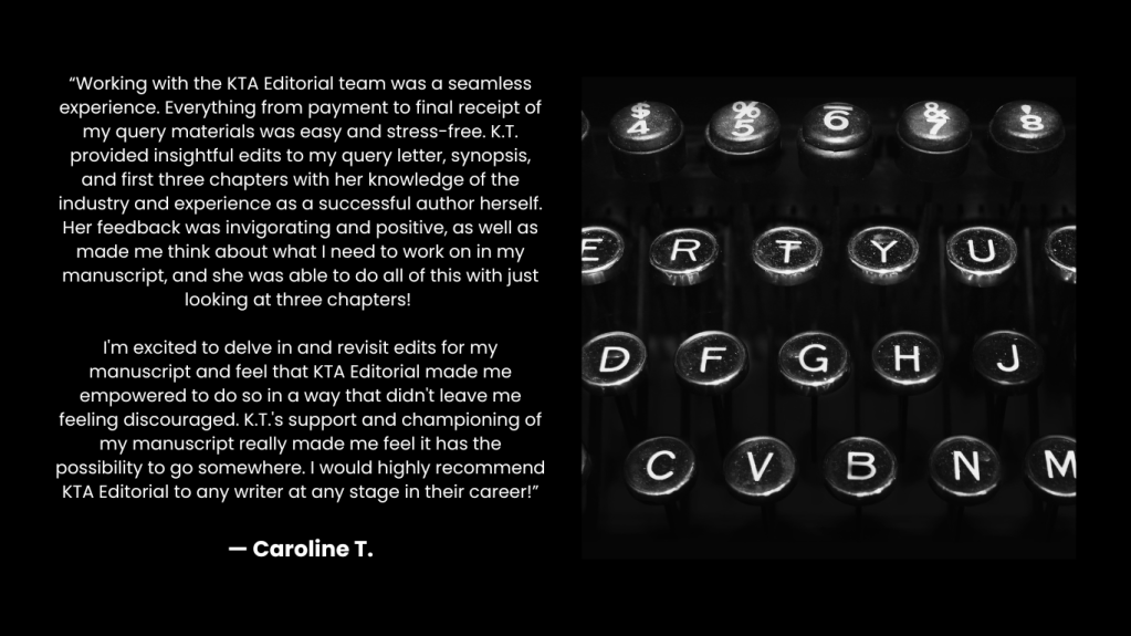 At KTA Editorial, we work closely with authors to help make good books even better through custom-tailored editorial services designed to meet their specific needs. Whether you’re planning to query your novel to agents or are looking to self-publish, we’ll help polish your pages for a final draft that’s ready to captivate readers.